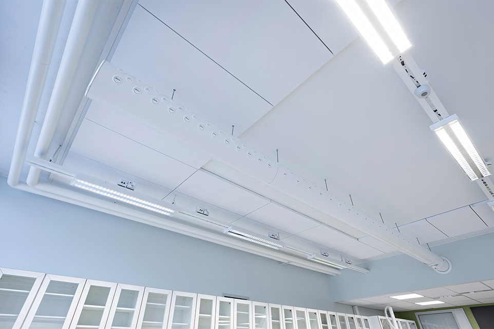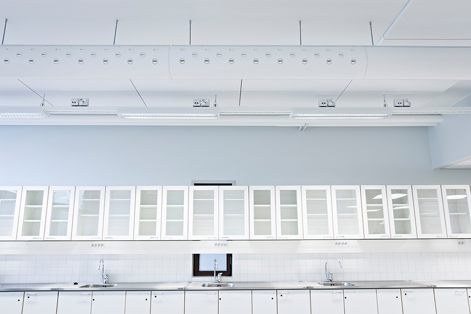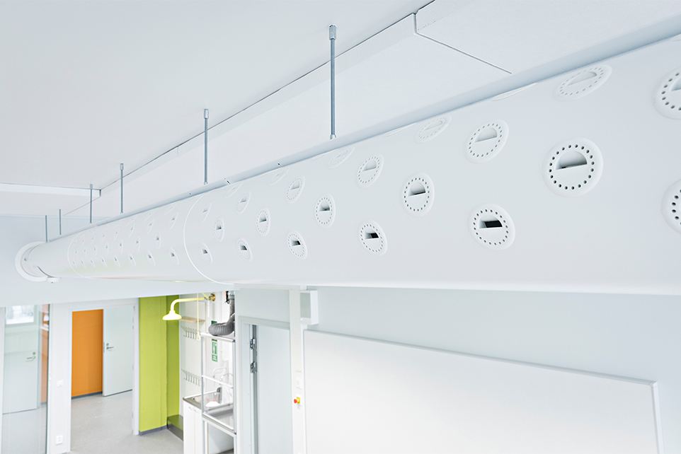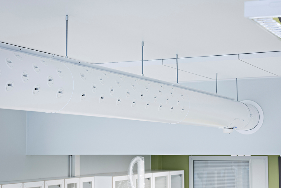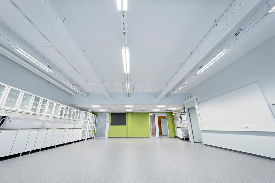 The large class rooms of Pohjankartano school require even large amounts of air. The adaptable ROX nozzle duct was chosen to meet this challenge. ROX nozzle duct ensures even air distribution for the enclosed large spaces. Thanks to its stylish design ROX blends smoothly into the white ceiling, which is of special importance at such spaces where the nozzle ducts can be seen.