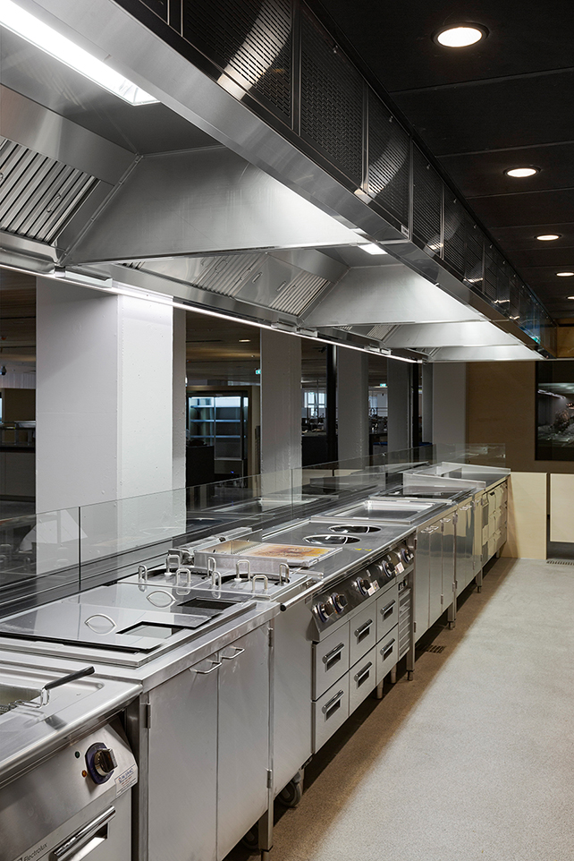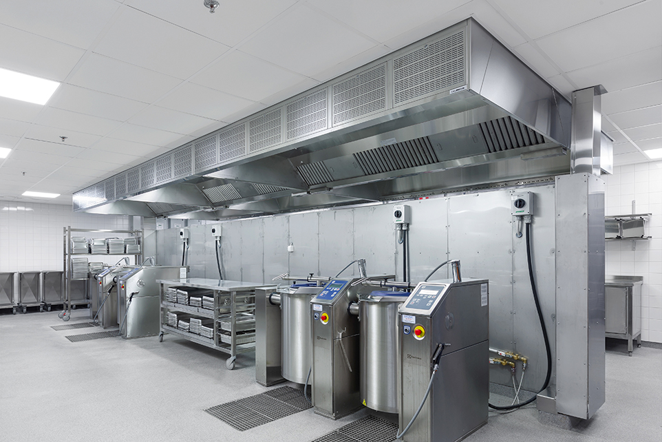 Keittiön puolelle valittiin ammattikeittiöiden ehdoton ykkösratkaisu, CleanMaster®. Uudistetut CleanMaster®-huuvat tarjoavat markkinoiden edistyksellisintä teknologiaa niin puhdistuksen kuin turvallisuudenkin suhteen. Markkinoiden tehokkainta neliportaista UV-teknologiaa hyödyntävä puhdistusjärjestelmä pitää kanaviston ja rasvakammiot puhtaina sekä parantaa paloturvallisuutta. Innovatiivinen AirBoost-teknologia taas estää keittiölaitteiden tuottamaa lämpöä ja käryä leviämästä suuremmalle alueelle.