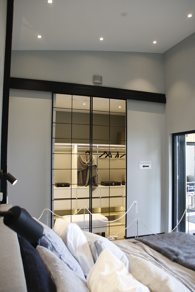 Vaaleat RINO tuloilmaventtiilit sopivat loft-talon vaihteleviin tiloihin. Kohteen tyylikkäässä ja ilmavassa makuuhuoneessa harmaa LINO tuloilmaventtiili huolehtii tasaisesta ja hiljaisesta ilmanvaihdosta.