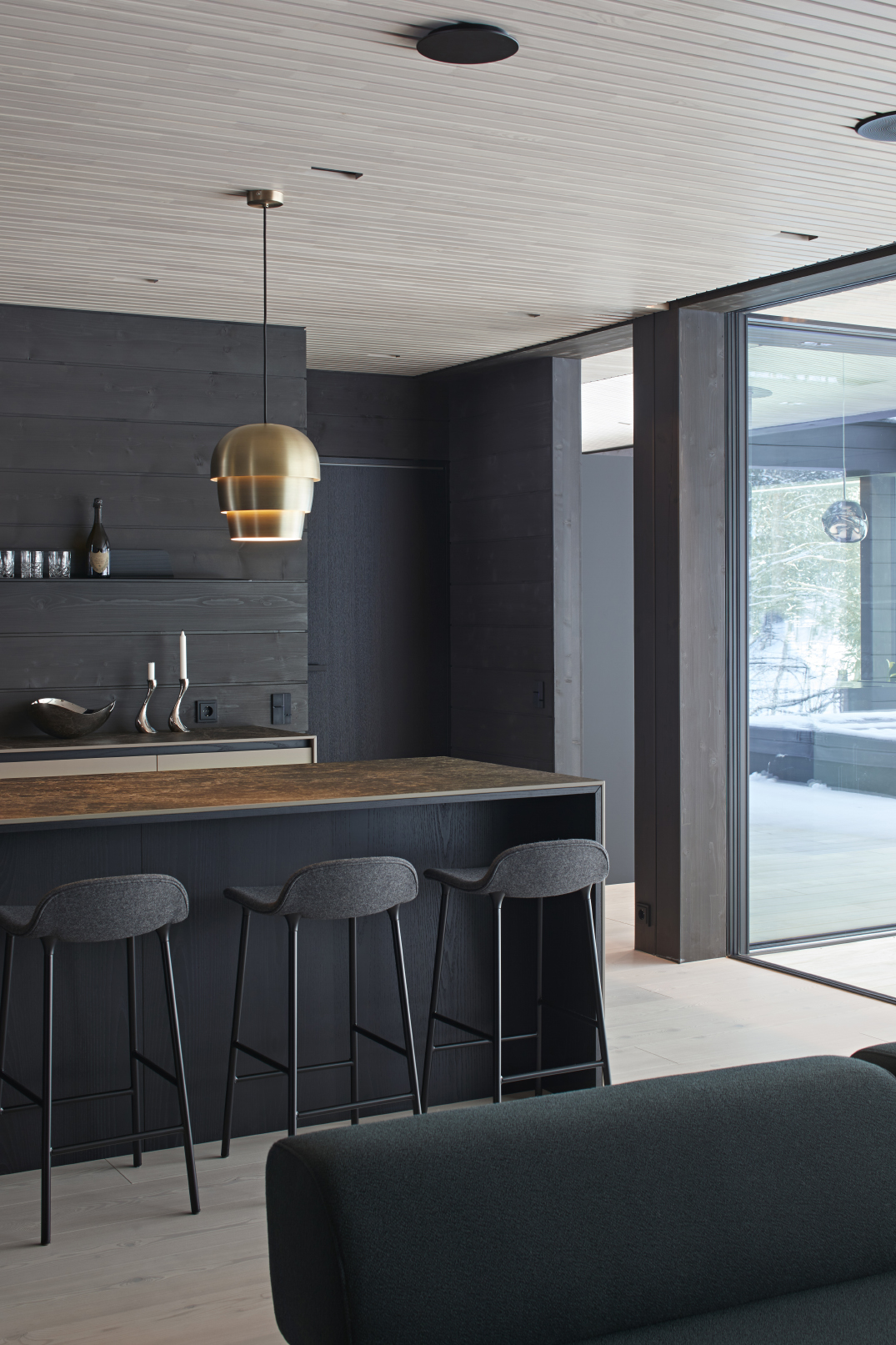 Talon sisustuksen on suunnitellut sisustusarkkitehti Antti-Jussi Silvennoinen Franz Desing Oy:ltä ja talon arkkitehtinä toimi Seppo Mäntylä. Kohteeseen haettiin omistajansa näköistä, minimalistista tyyliä. Katosta lattiaan asti ulottuvat valtavat ikkunat tuovat metsän rauhan joka puolelle taloa. Sisätilojen saumaton luontoyhteys näkyy myös materiaalivalinnoissa. Saman sävyistä puuta on käytetty sekä lattiassa että katossa ja kaikki tasot ovat keraamisia.