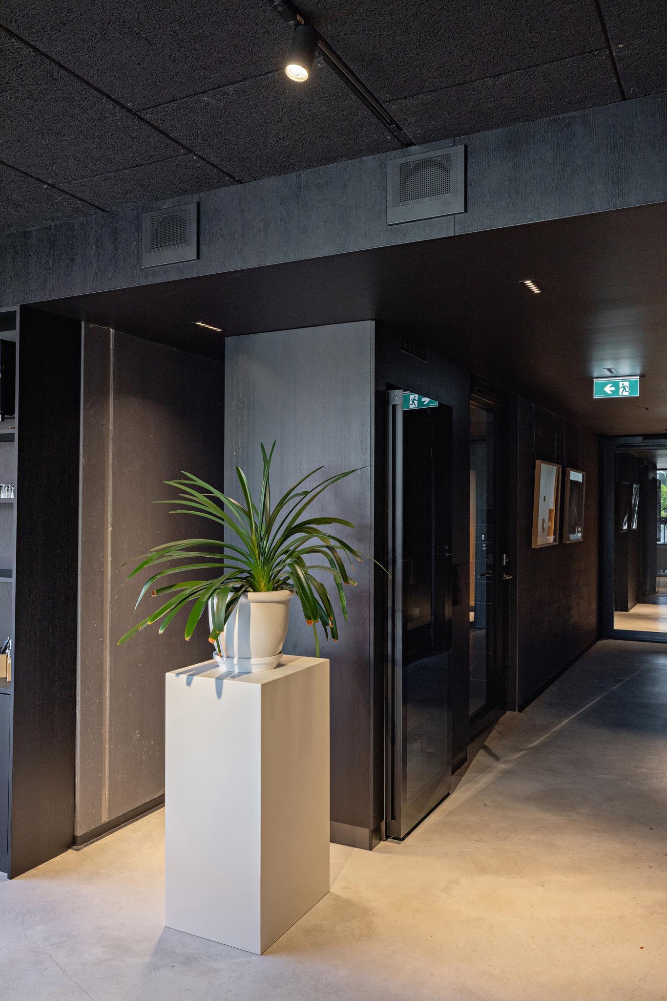 PAVE:n uuteen toimistoon valittiin mattamustat FINO-, RINO- ja VIP-venttiilit, joiden mattapinta sai erityistä kiitosta. Arkkitehti ja toimitusjohtaja Pave Mikkonen korostaakin, kuinka tärkeää on, että myös ilmanvaihdon päätelaitteet tukevat arkkitehtuurillista kokonaisuutta: