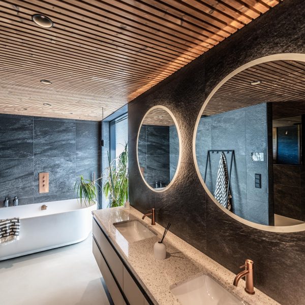 Betoniviidakko on pettämättömällä maulla toteutettu minimalistinen mutta lämmin kivitalo Naantalin Asuntomessuilla 2022. Nelihenkisen perheen kodin harmoonisissa sisätiloissa näkyy vanhempien rakkaus Balia kohtaan, josta on ammenenttu useissa sisustuksen elementeissä, materiaalivalinnoissa ja väripaletissa.