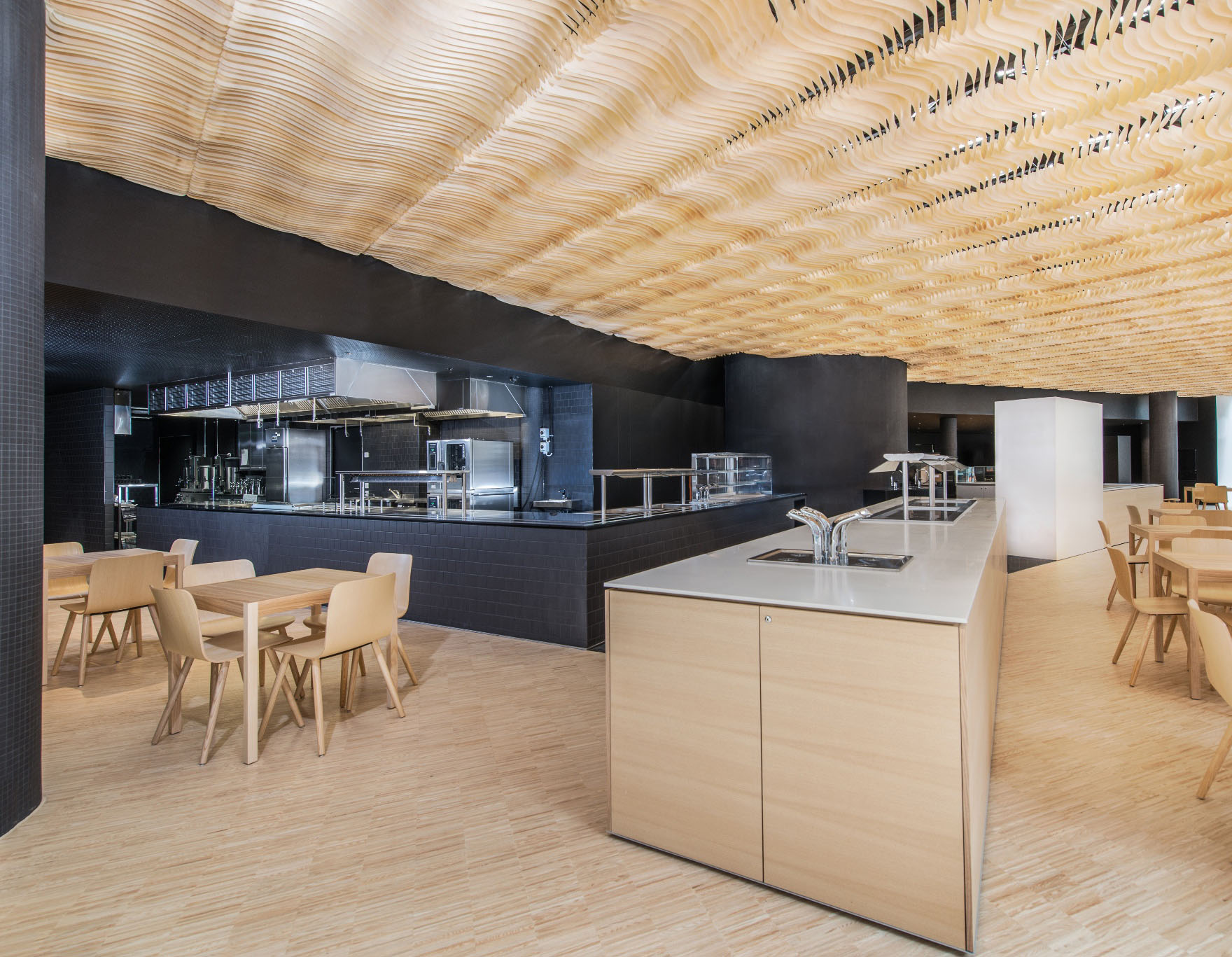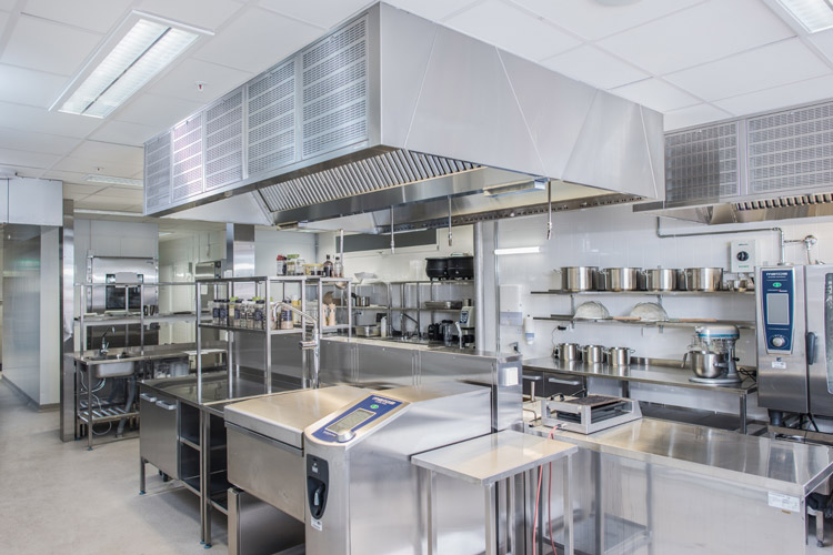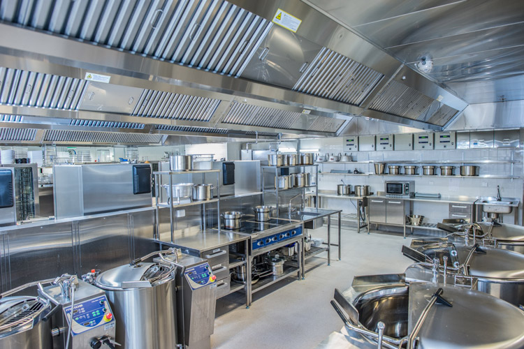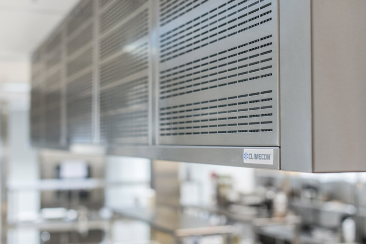 Utmaningen med det stora köket var ett högt antal ventilationsaggregat vad som löstes genom att ersätta en del kåpor med CleanMaster® -ventilationstak. Med hjälp av ventilationstaket kunde en enhetlig och stilitg helhet av ventilationsaggregaten skapas. Köket blev också mer rymligt och det kunde skapas mer utrymme.
