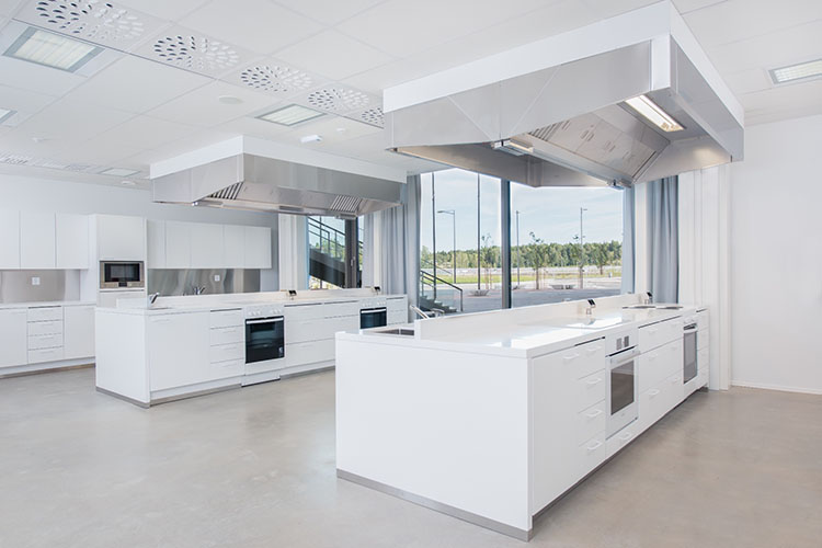 Till Opinmäki campus klassrum för hushållsundervisning valdes Climecons StandardPlus -kåpor som passar utmärkt till det rymliga klassrummet på grund av deras stiliga utseende samt låga konstruktionshöjd.