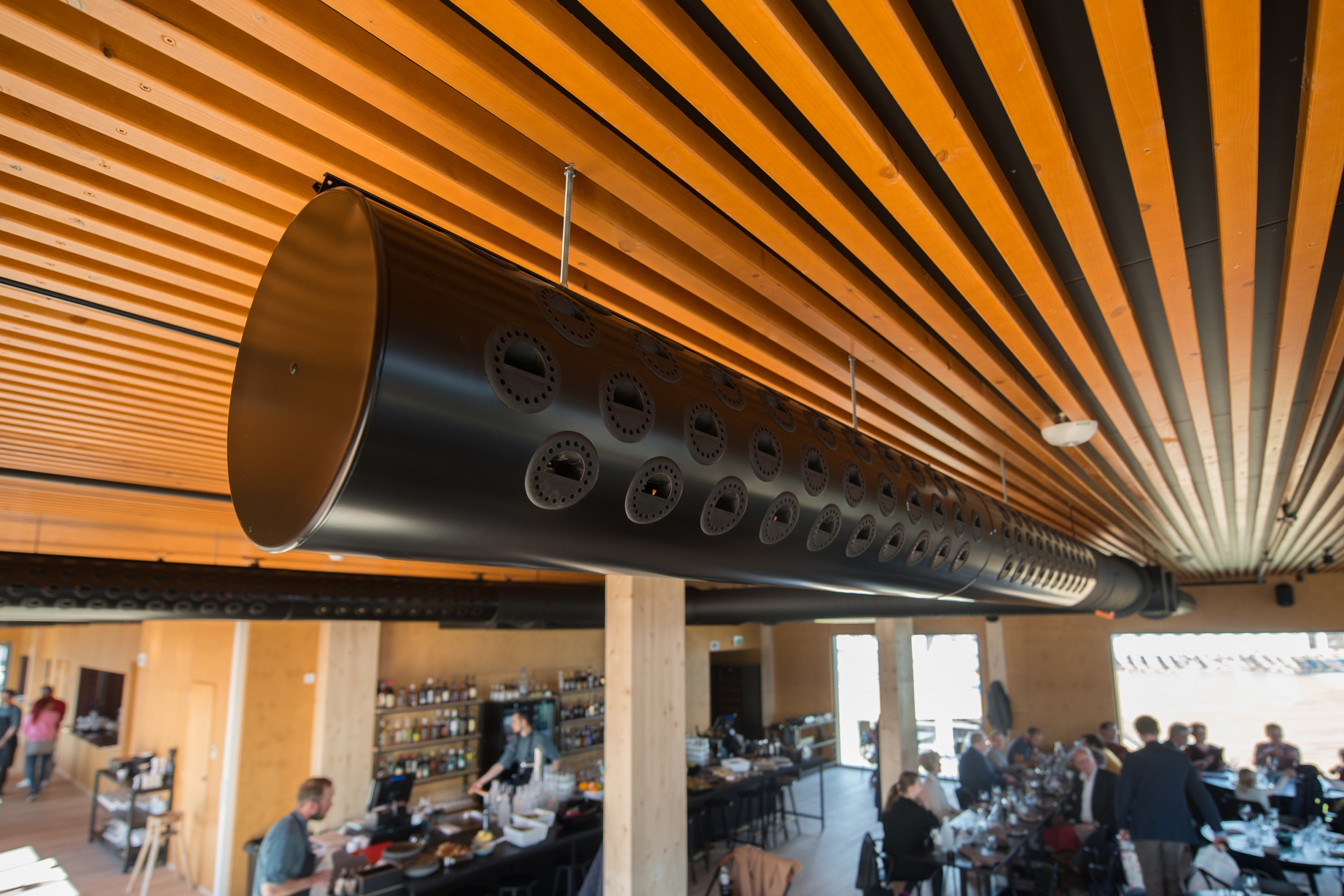 Kanały nawiewne ROX, które reprezentują fiński design, zostały wybrane do lokalu Allas Café. Wymagania dotyczące dyfuzorów powietrza były wysokie: „Potrzebne było elastyczne i funkcjonalne rozwiązanie, do dystrybucji powietrza, a także odpowiednie dla środowiska„, podkreśla Matias Meskanen (LVI Meskanen Oy), projektant HVAC. Oprócz zdolności adaptacyjnych produkt powinien być odpowiedni do swobodnej instalacji, a także do dużych ilości powietrza. „ROX spełnił wszystkie te wymagania„, zauważa Meskanen. Wykonawca, Lehto Group i projektant HVAC docenili zalety adaptowalności ROX w przypadku zmian układu pomieszczeń.