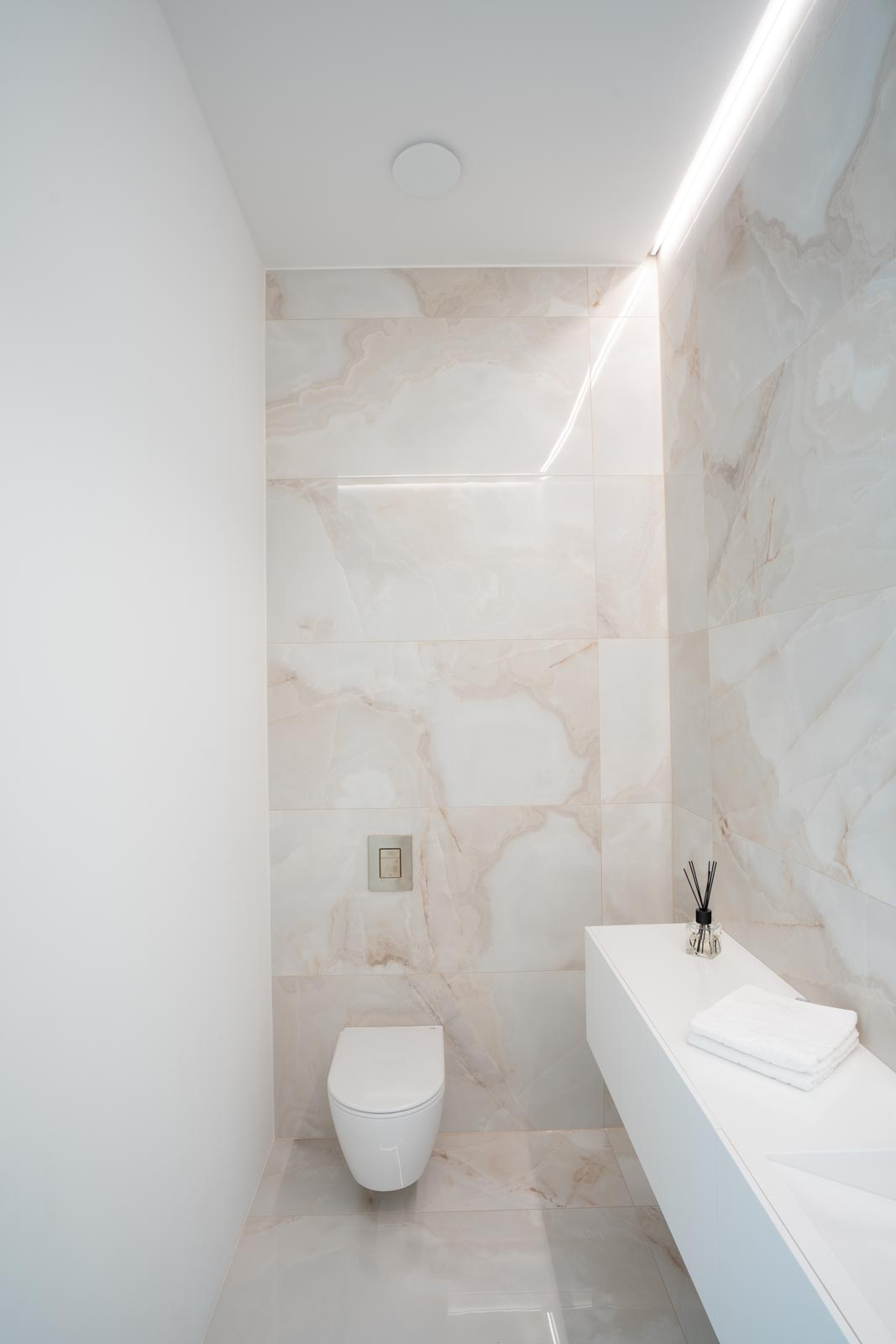 Light colors combined with large stone and marble surfaces play a key role in creating the spacious look of the home. LINE’s design and surface materials fit for the home’s well-thought-out atmosphere. Opal glass, matte white and Accoya LINE valves were selected for the site. Inspired by the broad possibilities of the valves, the homeowner calls for visually subtle options in other building services solutions as well.