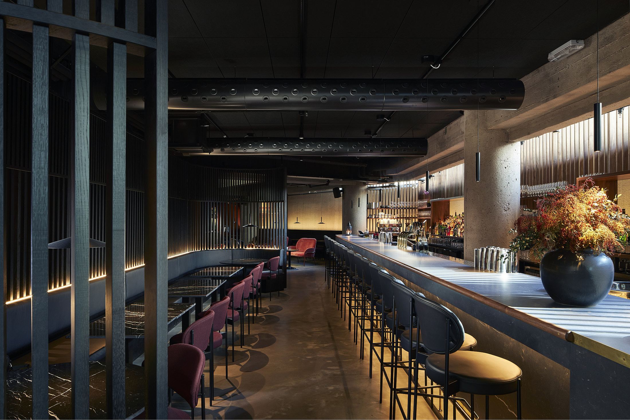 Farang’s stylish and warm ambience is deepened by the black ceiling, into which the matte black ROX nozzle ducts blend nicely. The product brings large volumes of air into the spacious dining room and bar quietly, in a controlled manner and without a disturbing feeling of draft.